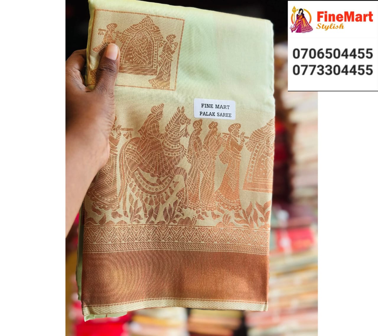 Semi silk saree scramento green colour with small design in body & contrast blouse