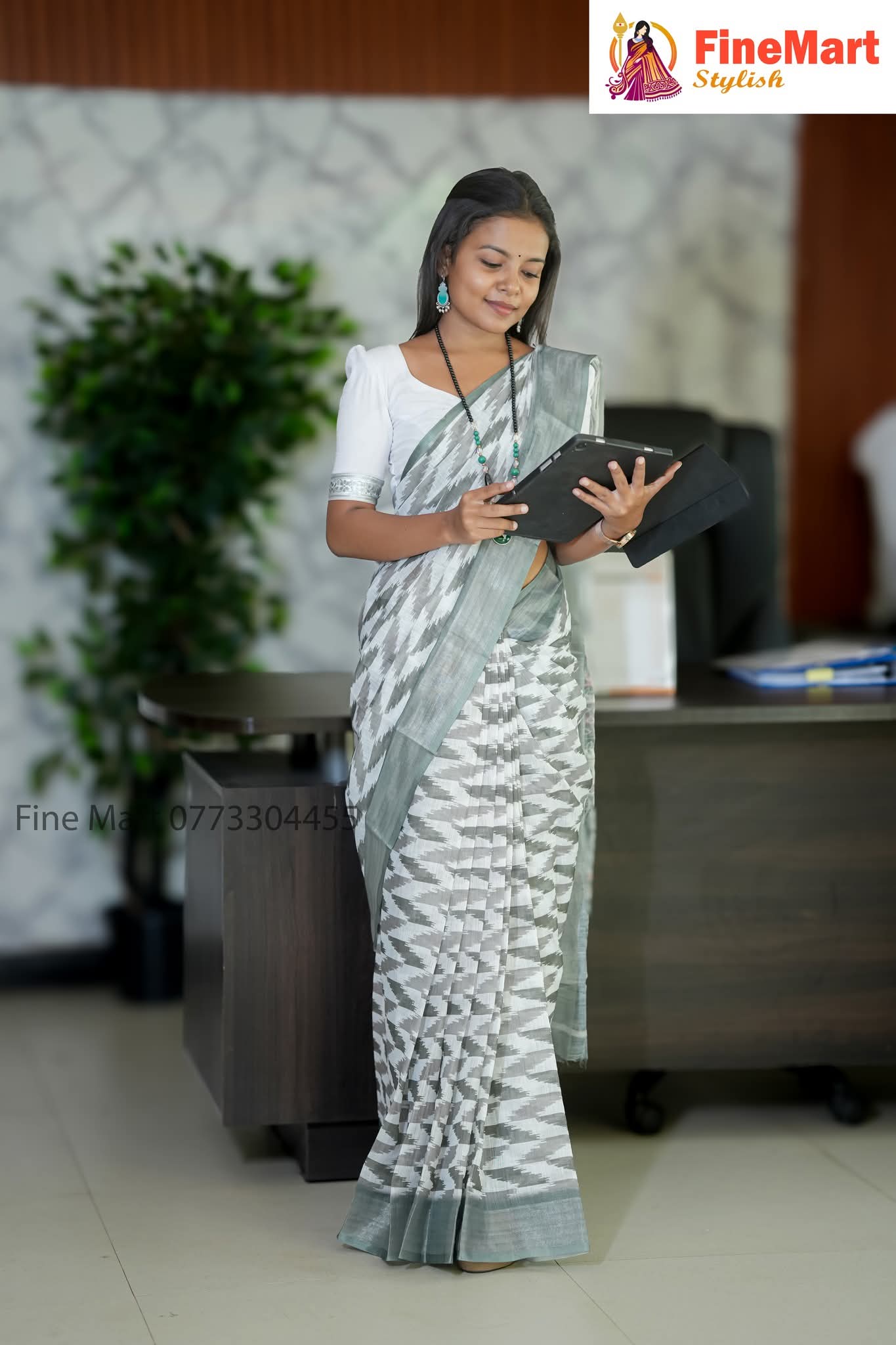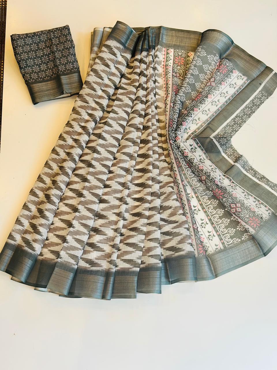 LINEN COTTON SAREE WITH PRINTED BLOUSE