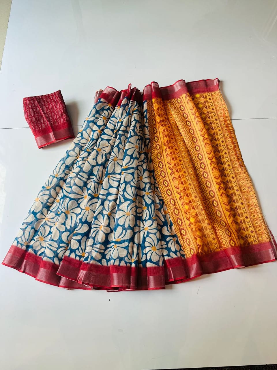 LINEN COTTON SAREE WITH PRINTED BLOUSE