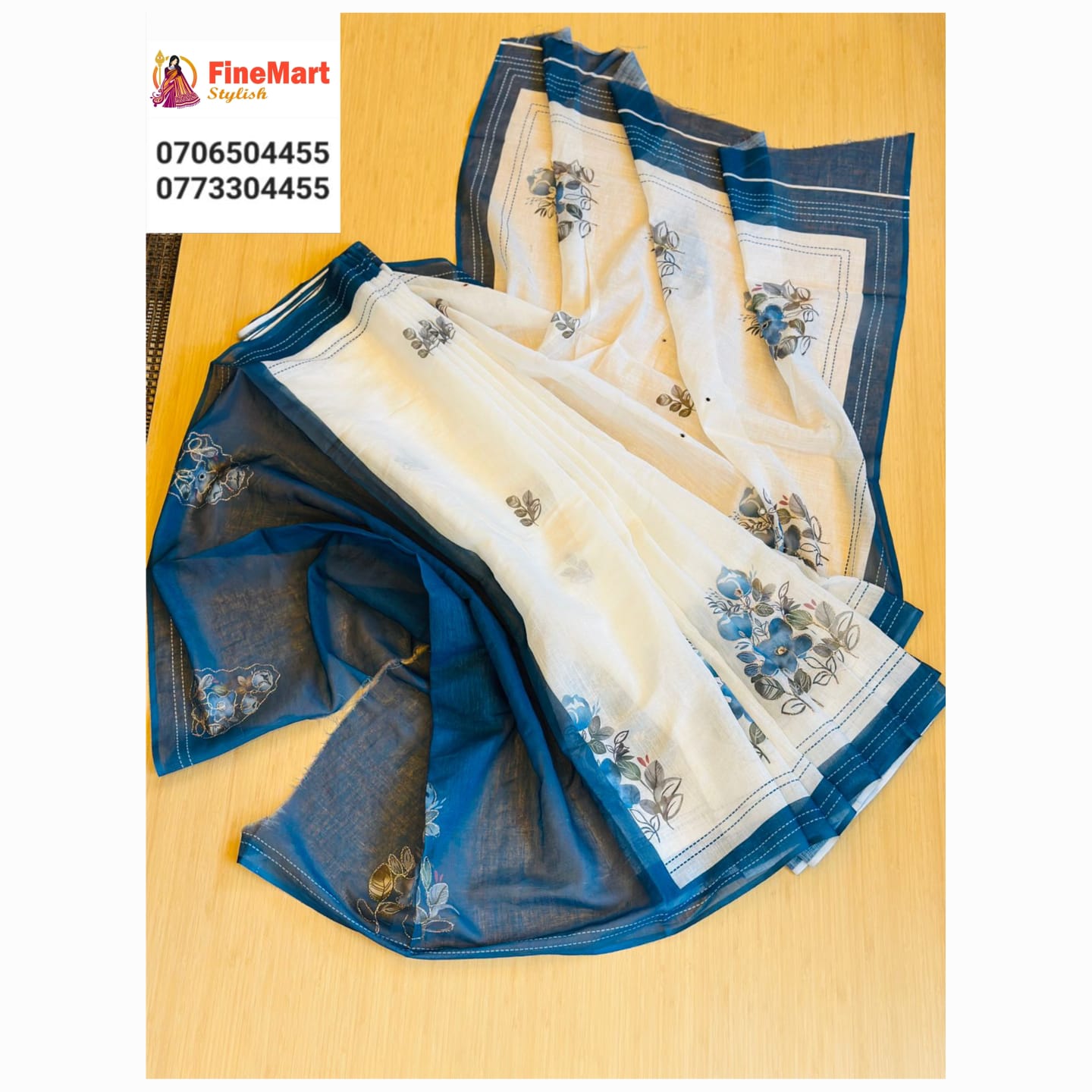 LINEN COTTON SAREE WITH DESIGN BLOUSE