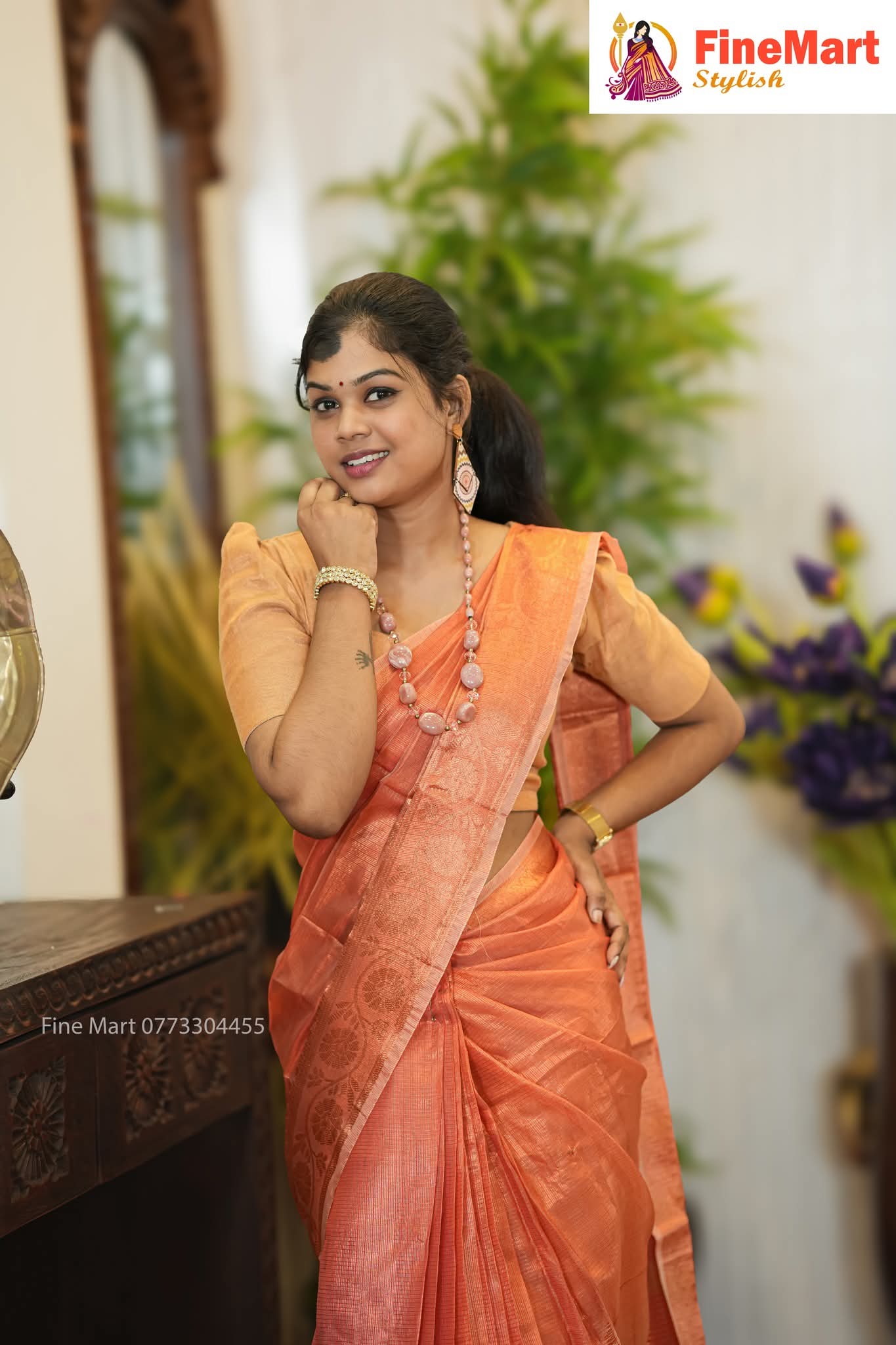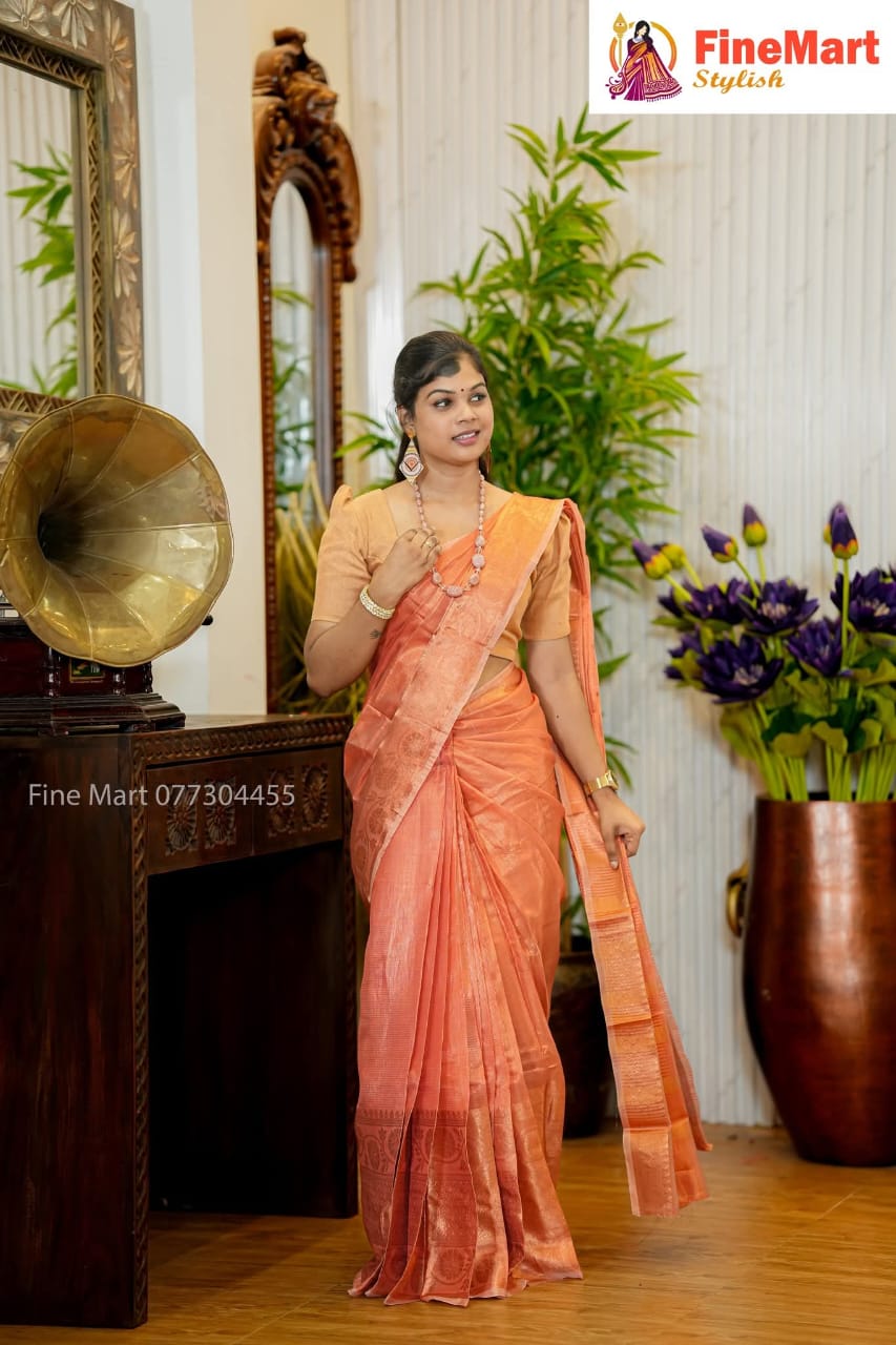 TISSUE SAREE AND COPPER BORDER WITH RUNNING BLOUSE