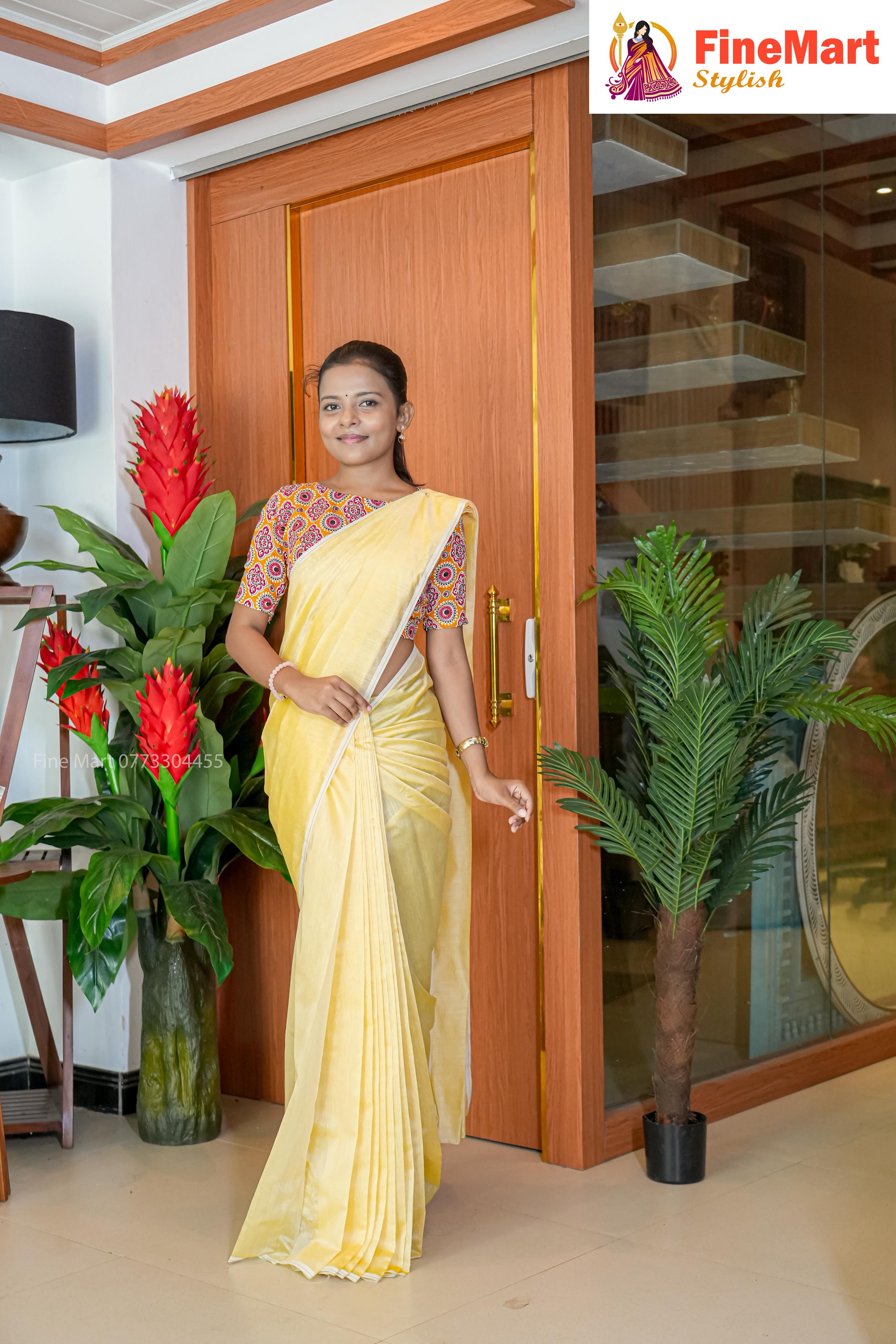 PLAIN DAILY WEAR SOFT COTTON SAREE WITH BLOUSE PIECE