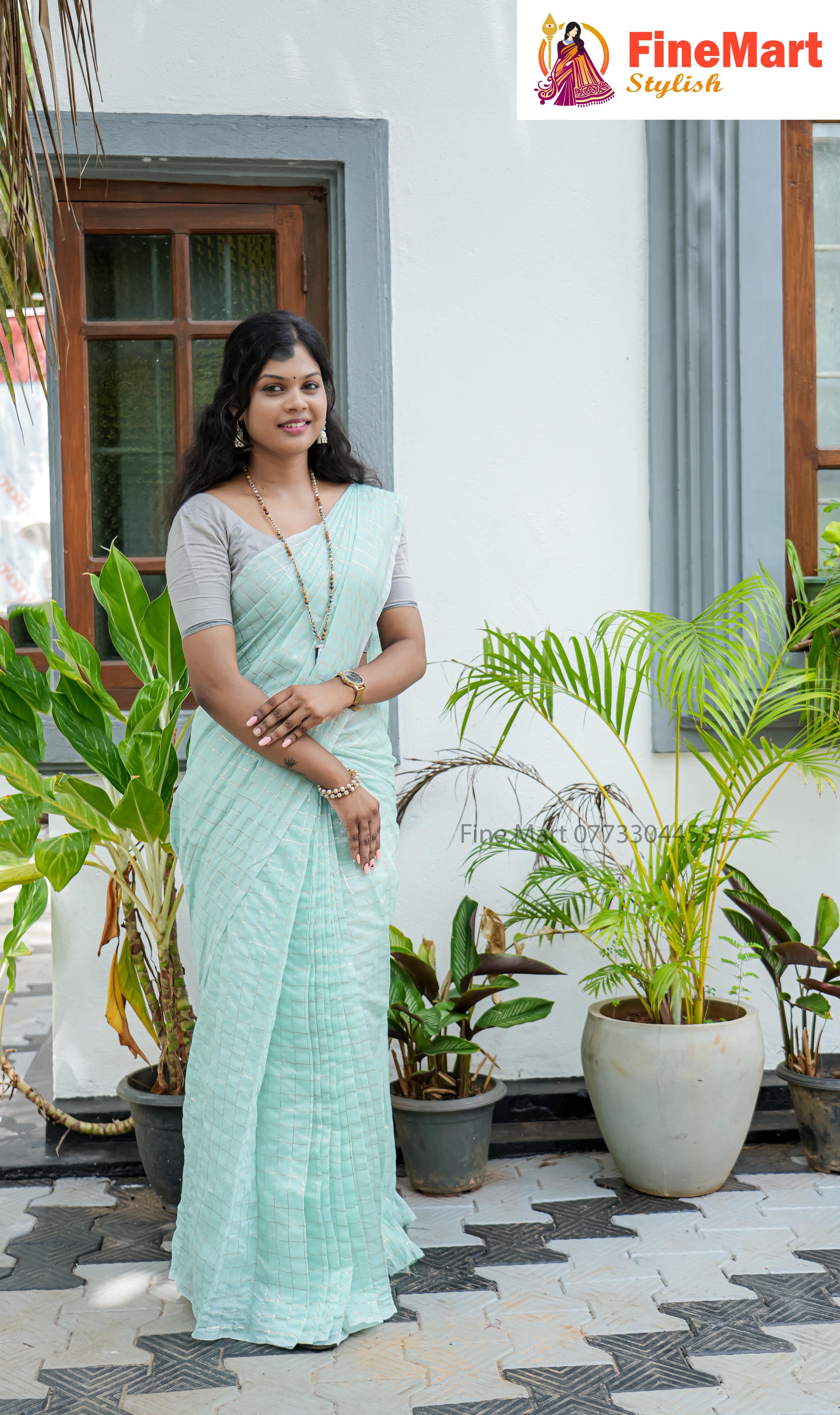SMALL GOLD CHECK SAREE WITH RUNNING BLOUSE