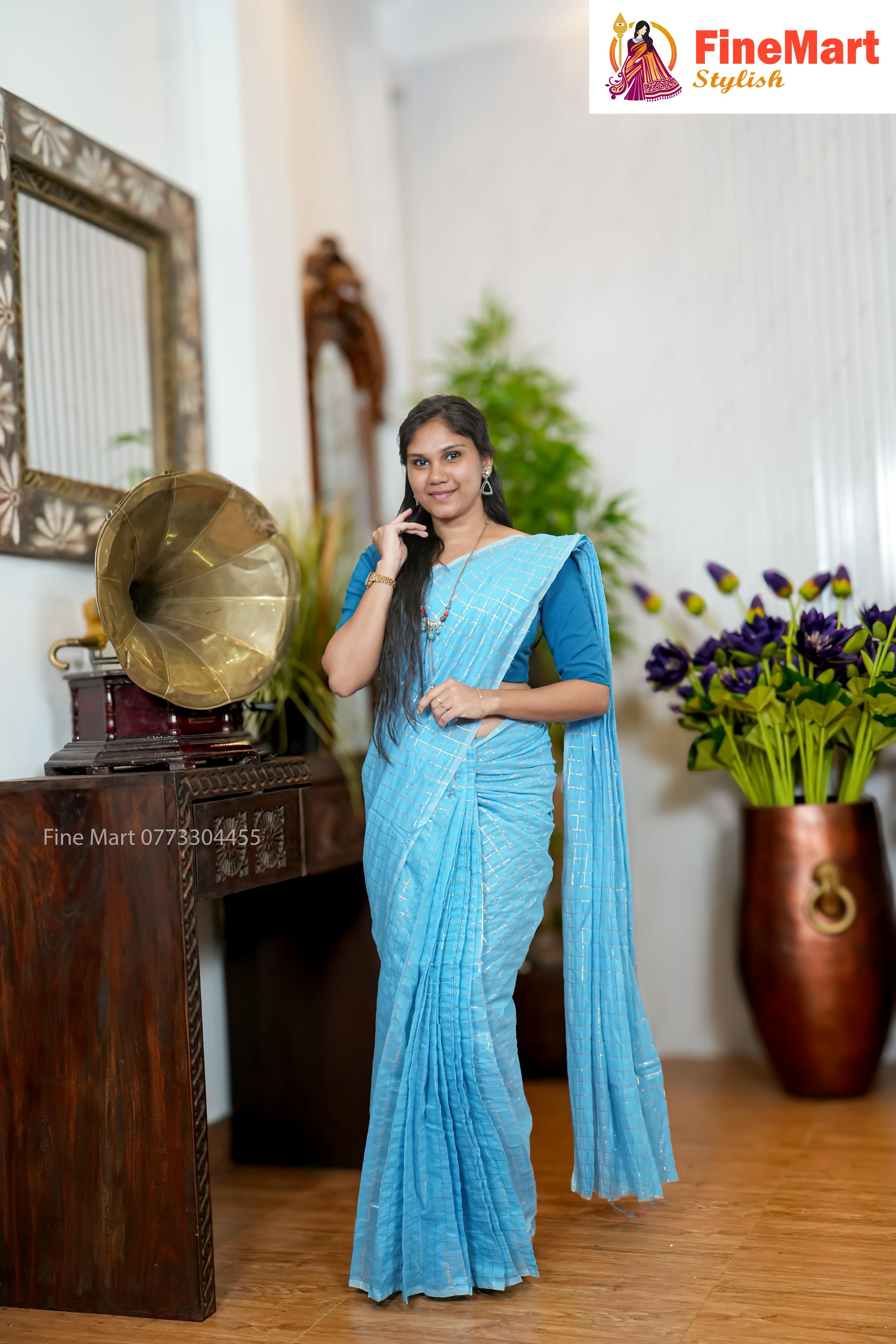 SMALL GOLD CHECK SAREE WITH RUNNING BLOUSE