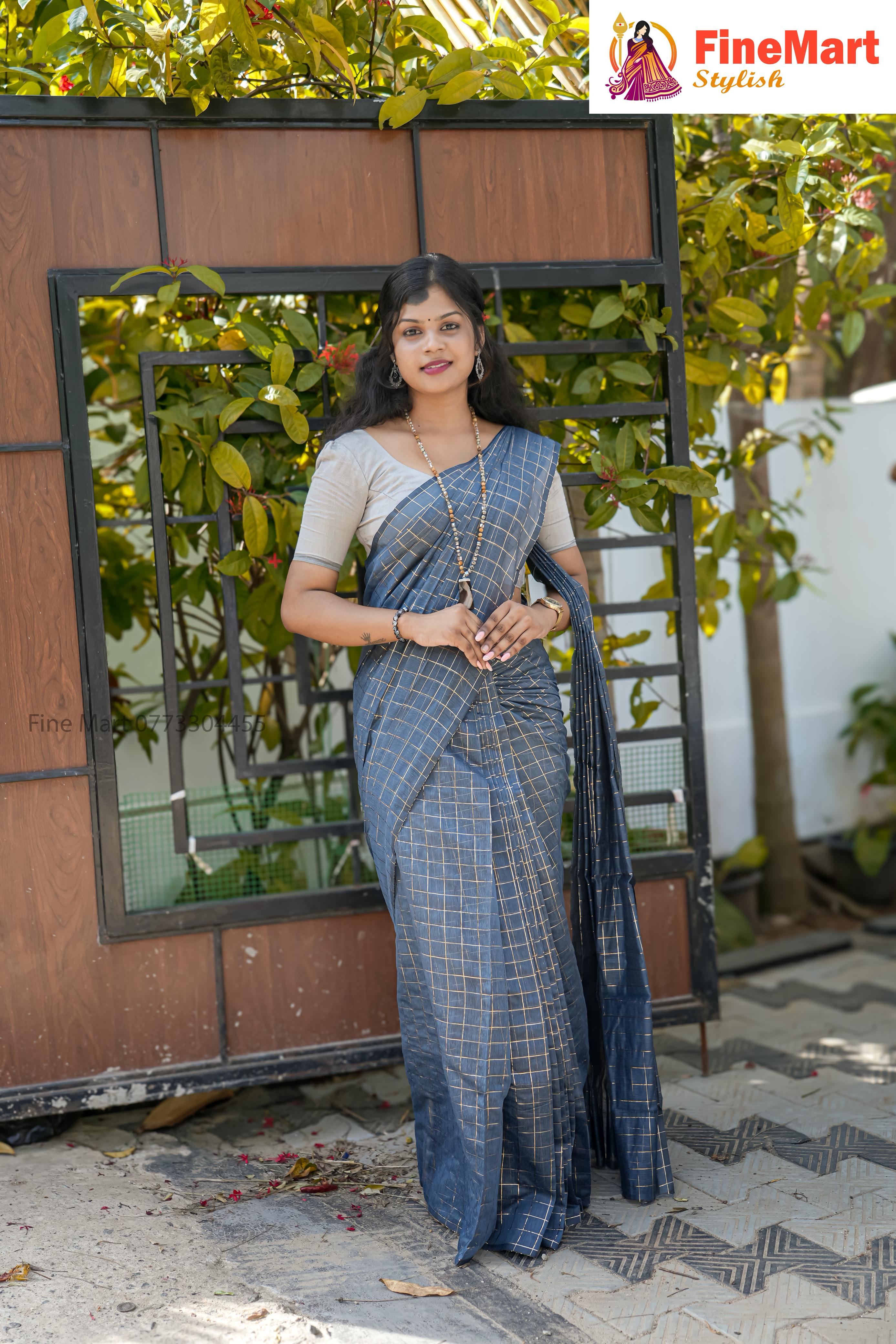 SMALL GOLD CHECK SAREE WITH RUNNING BLOUSE