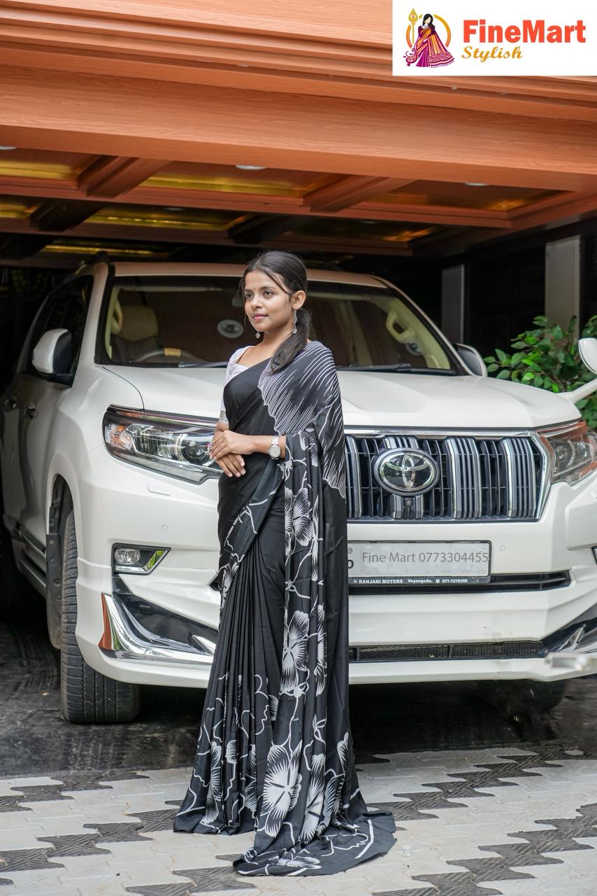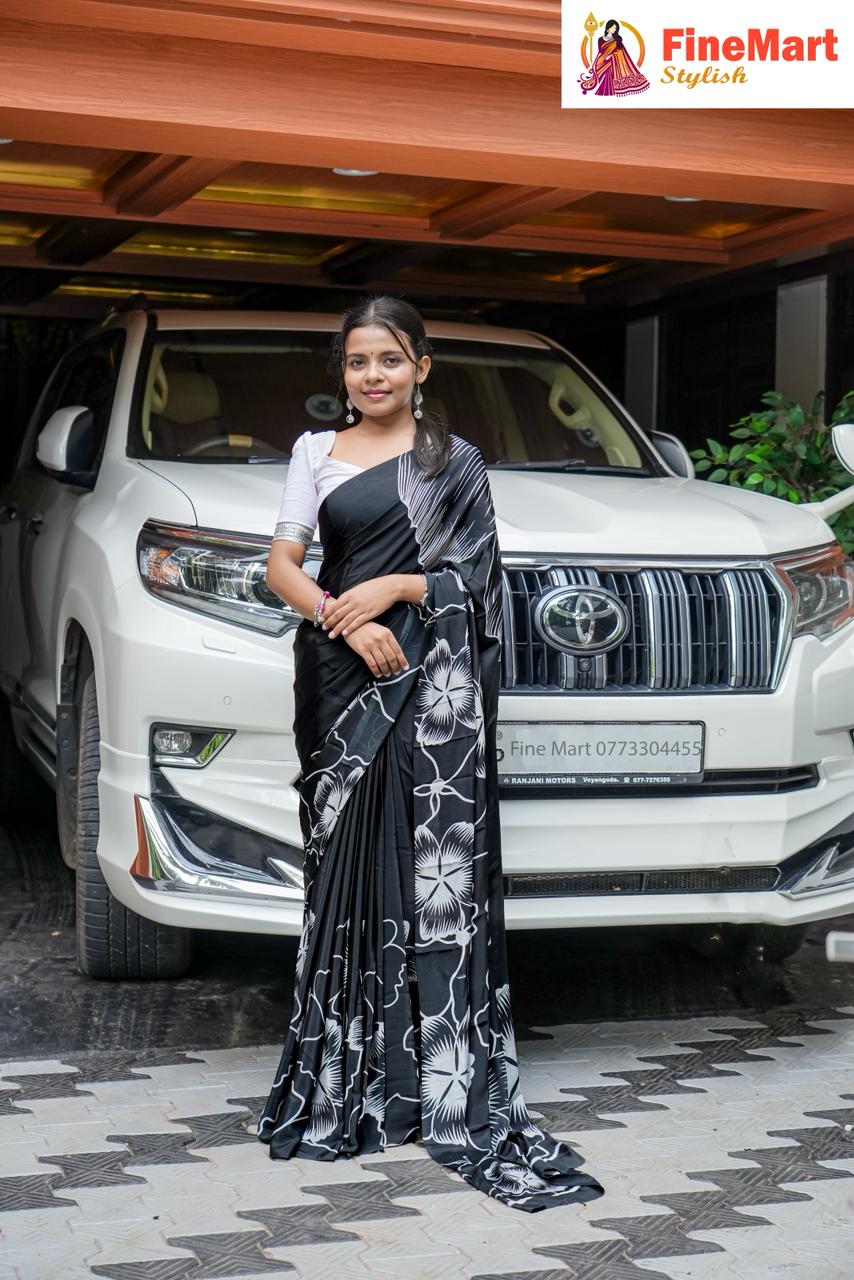 Printed valantina saree with contrast blouse piece