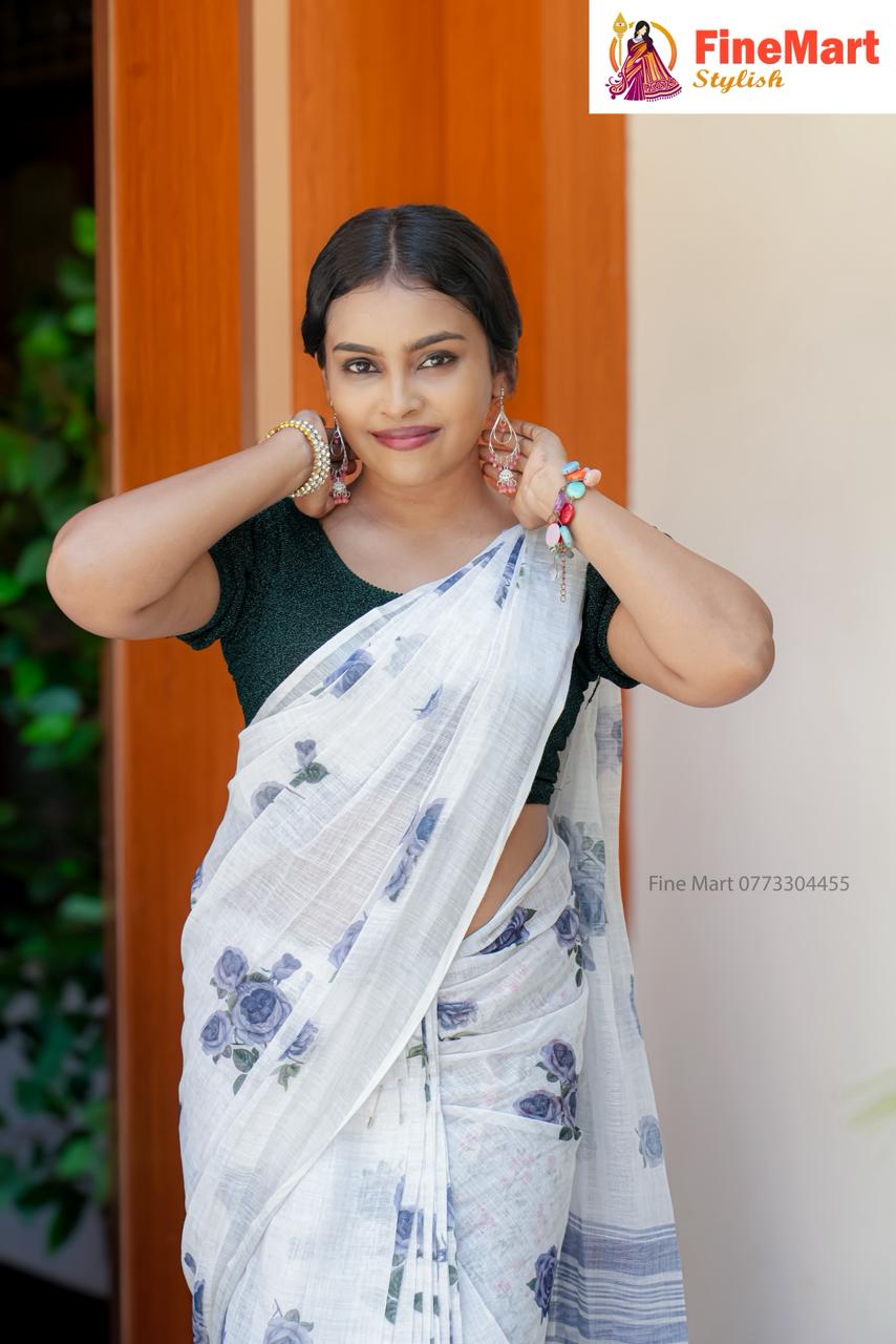 LINEN COTTON SAREE WITH DESIGN BLOUSE