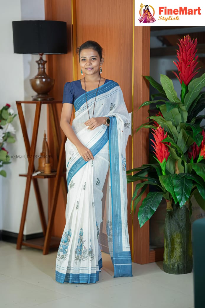 LINEN COTTON SAREE WITH DESIGN BLOUSE