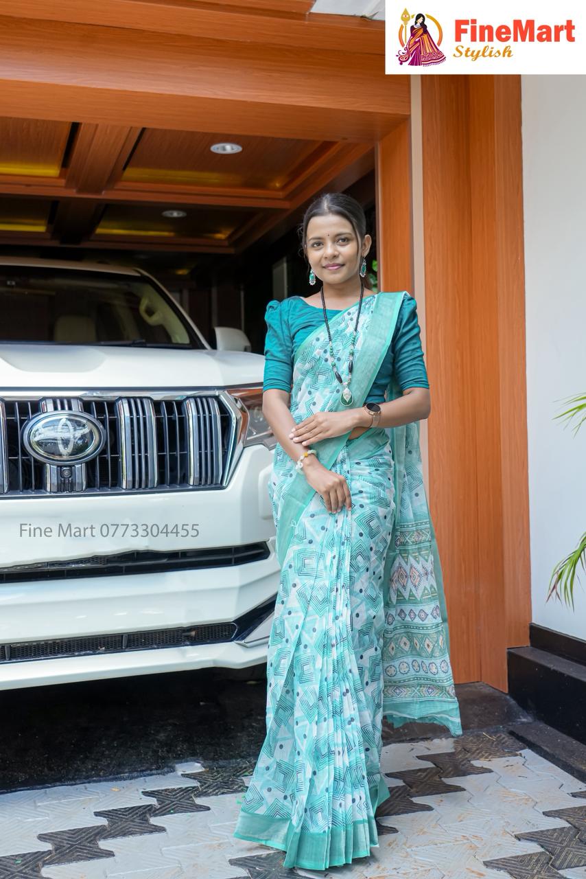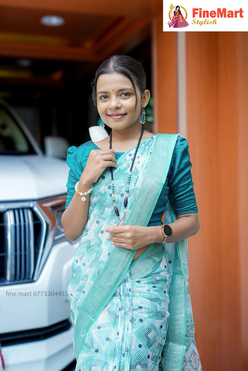 LINEN COTTON SAREE WITH DESIGN BLOUSE