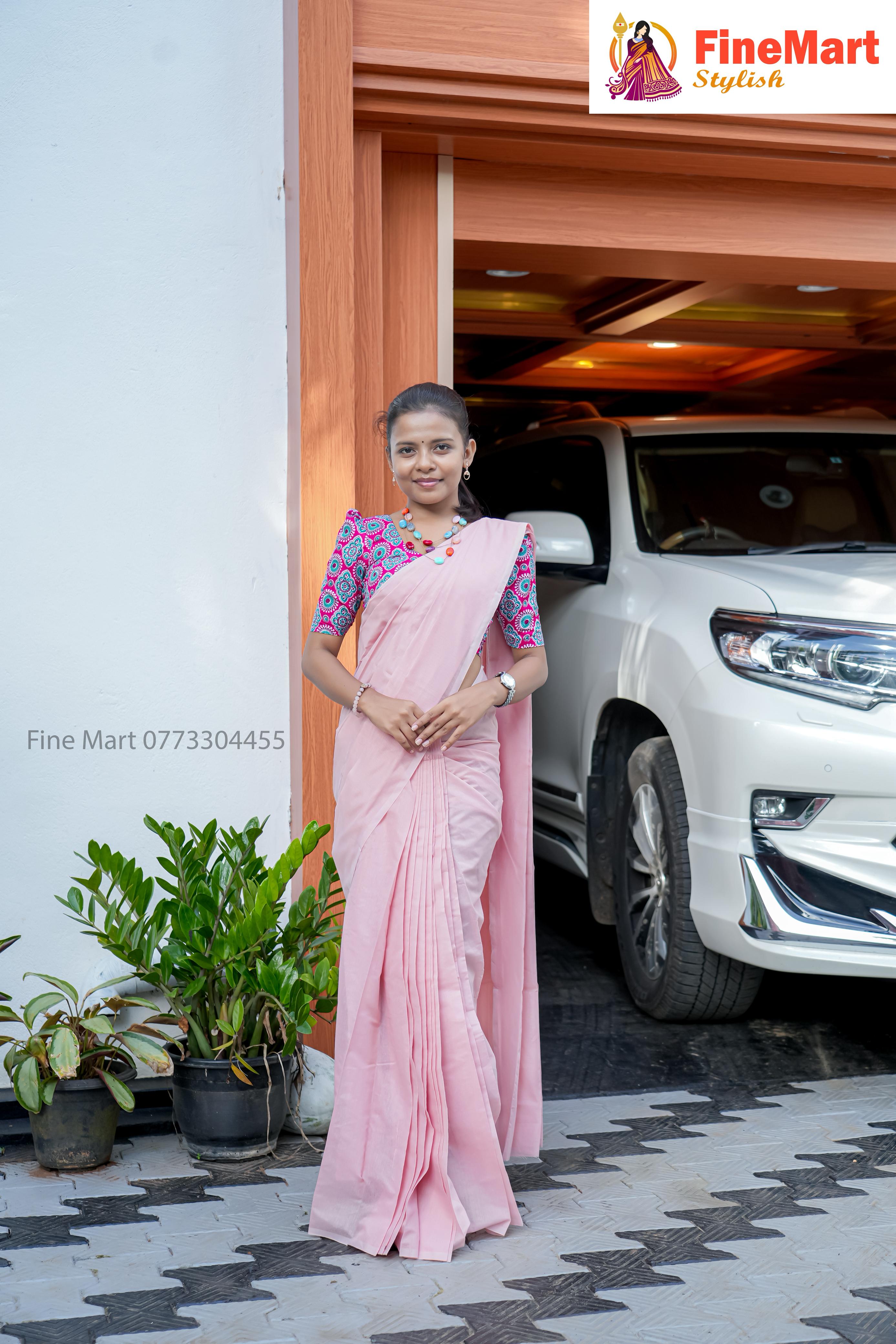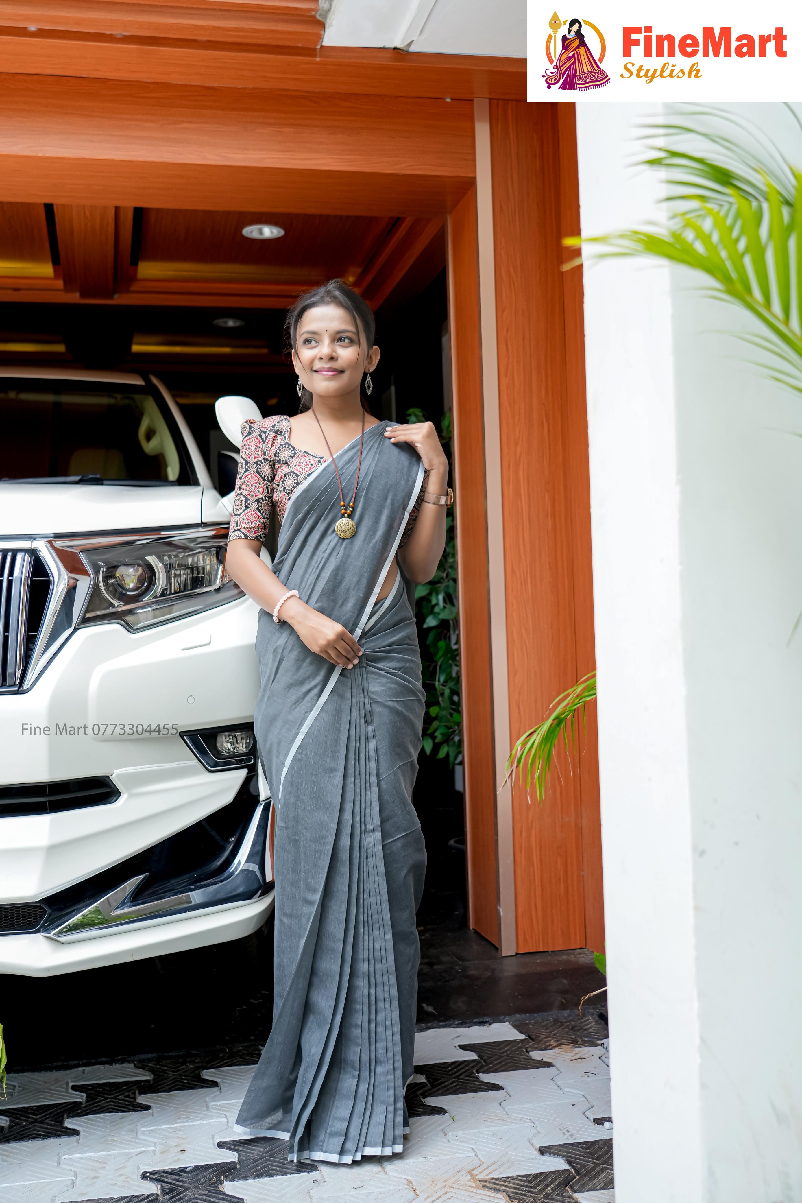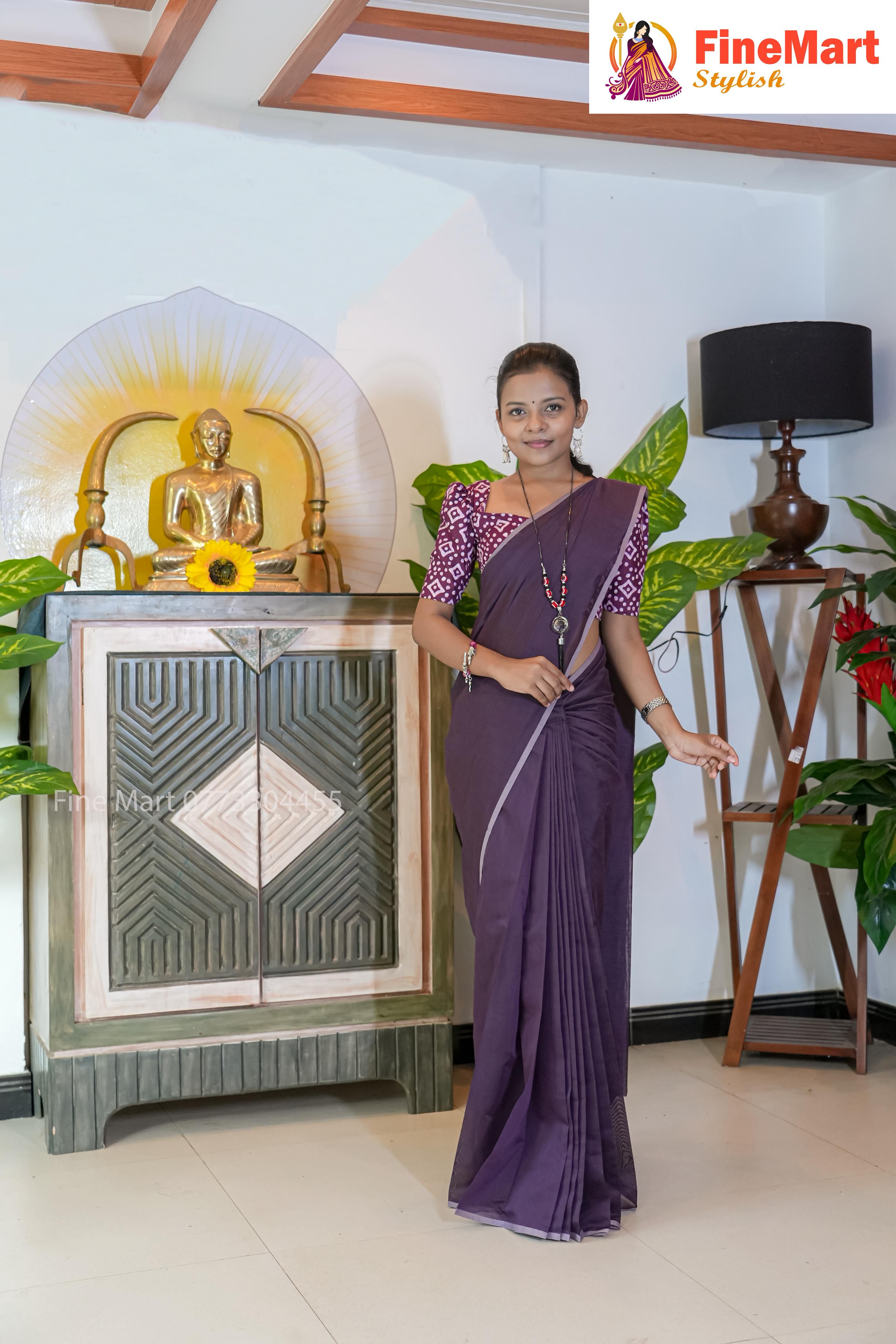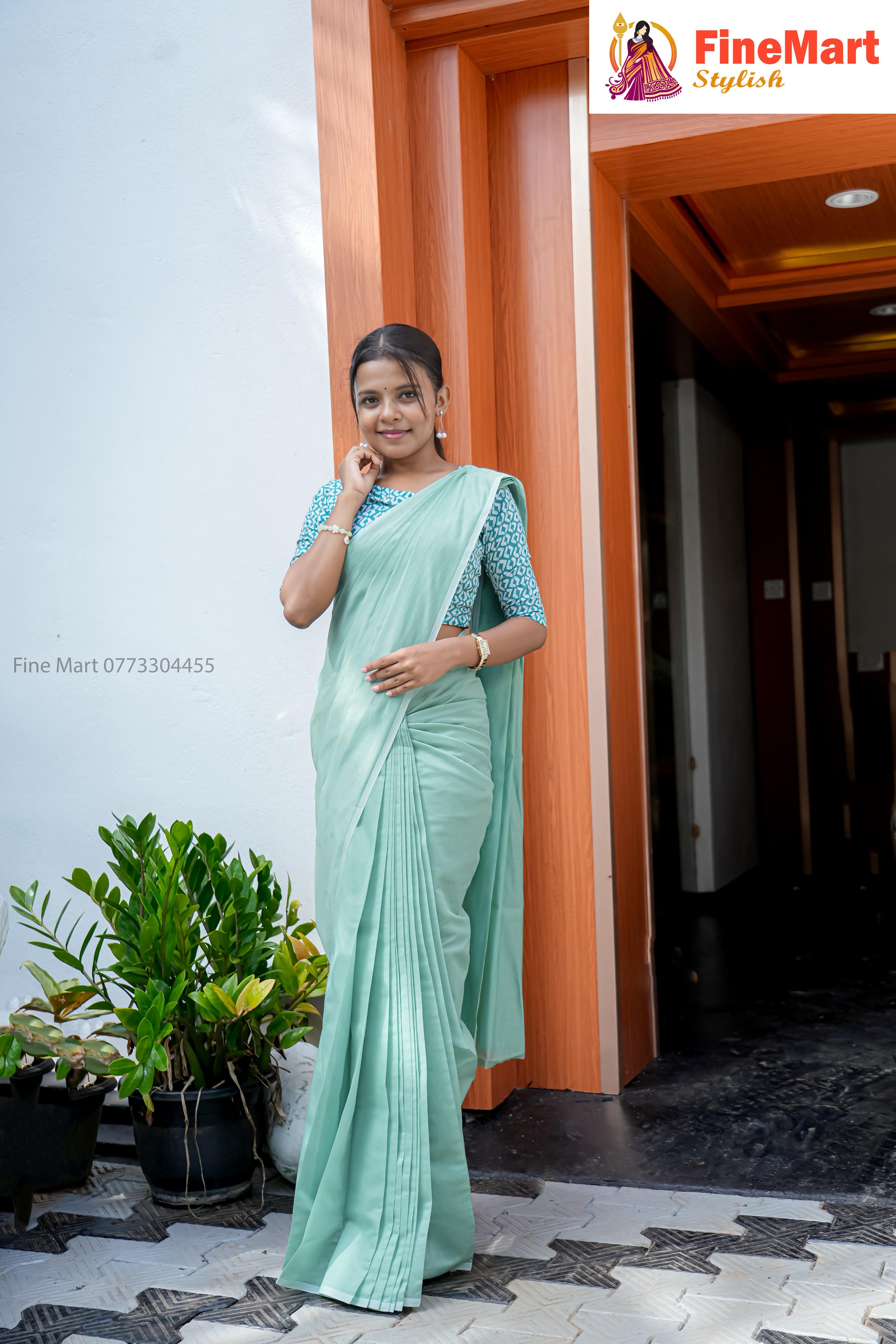 PLAIN DAILY WEAR SOFT COTTON SAREE WITH BLOUSE PIECE