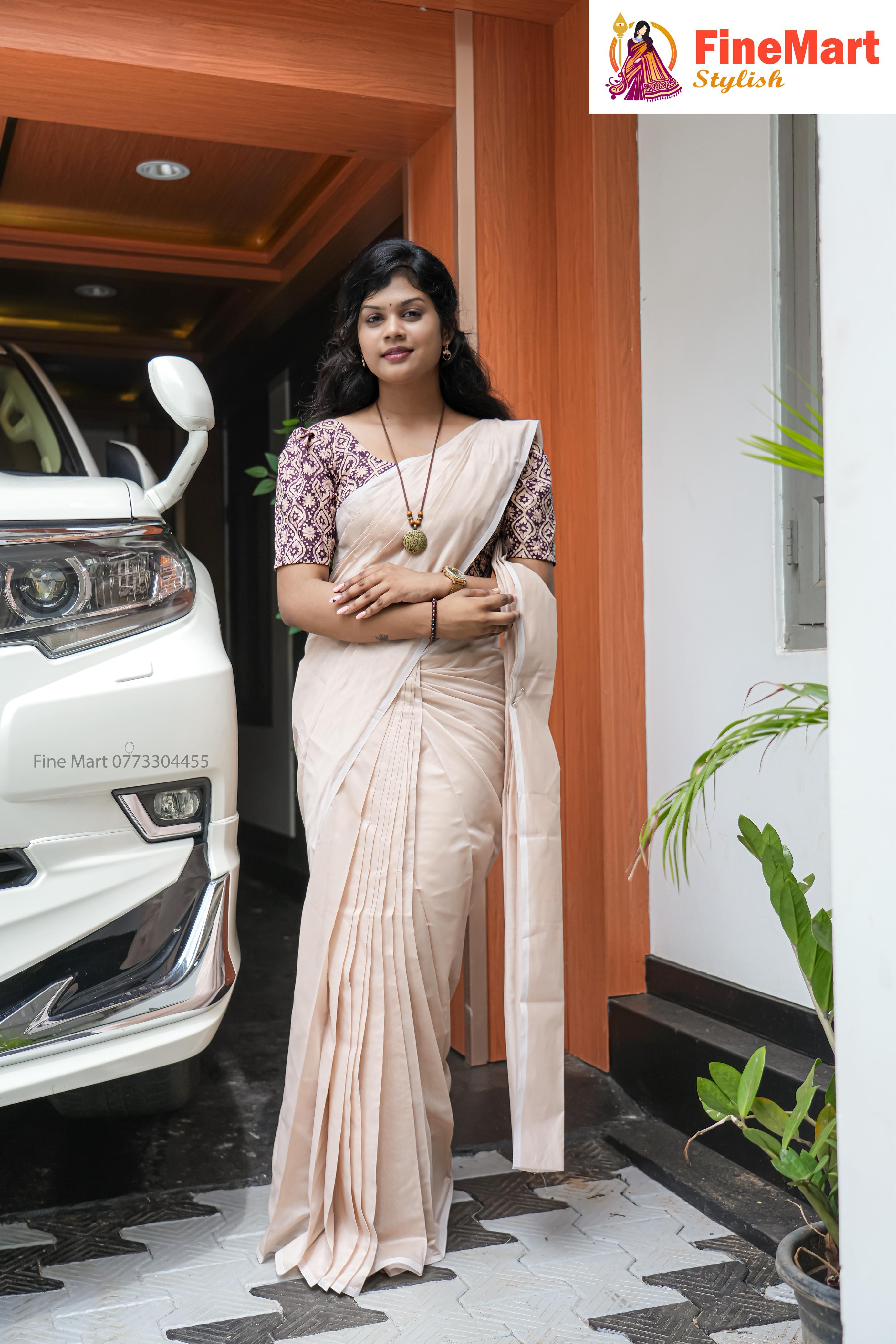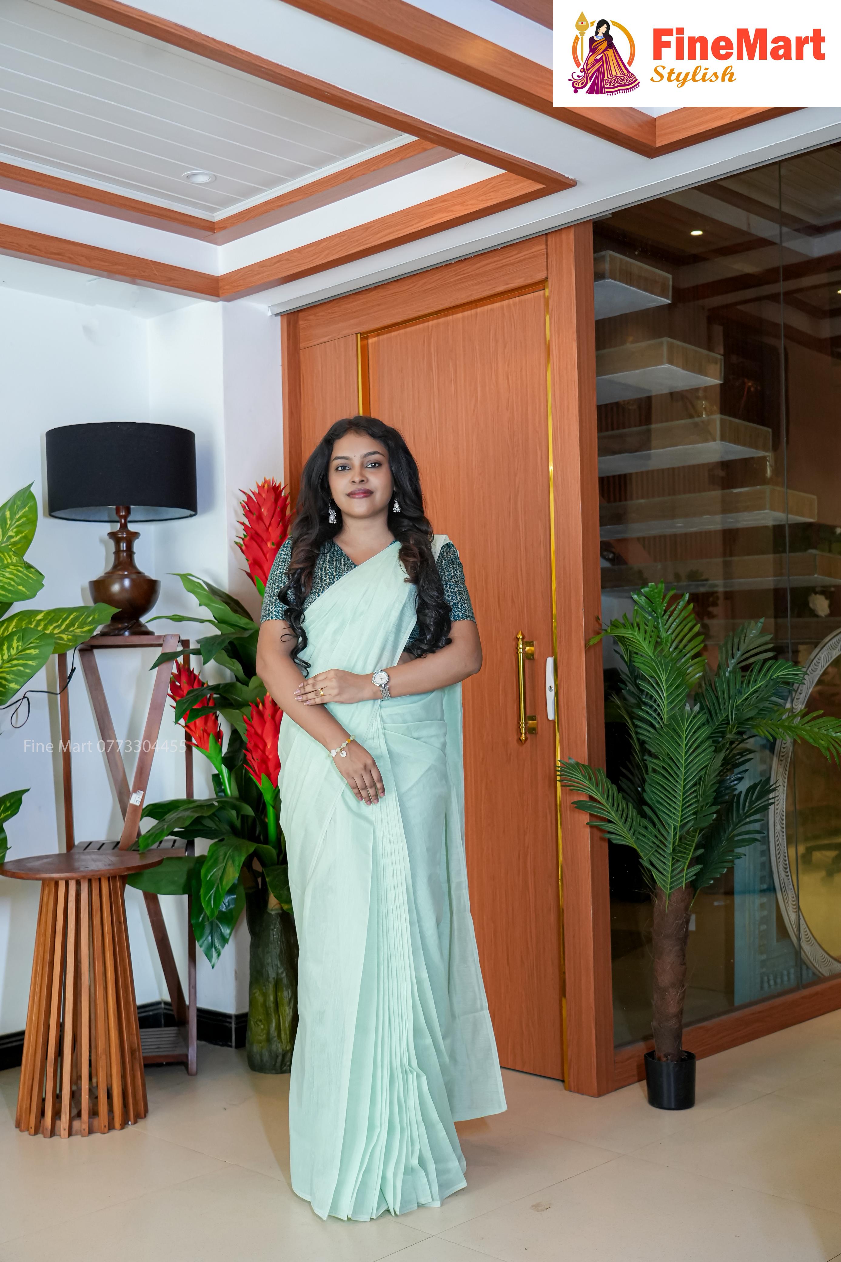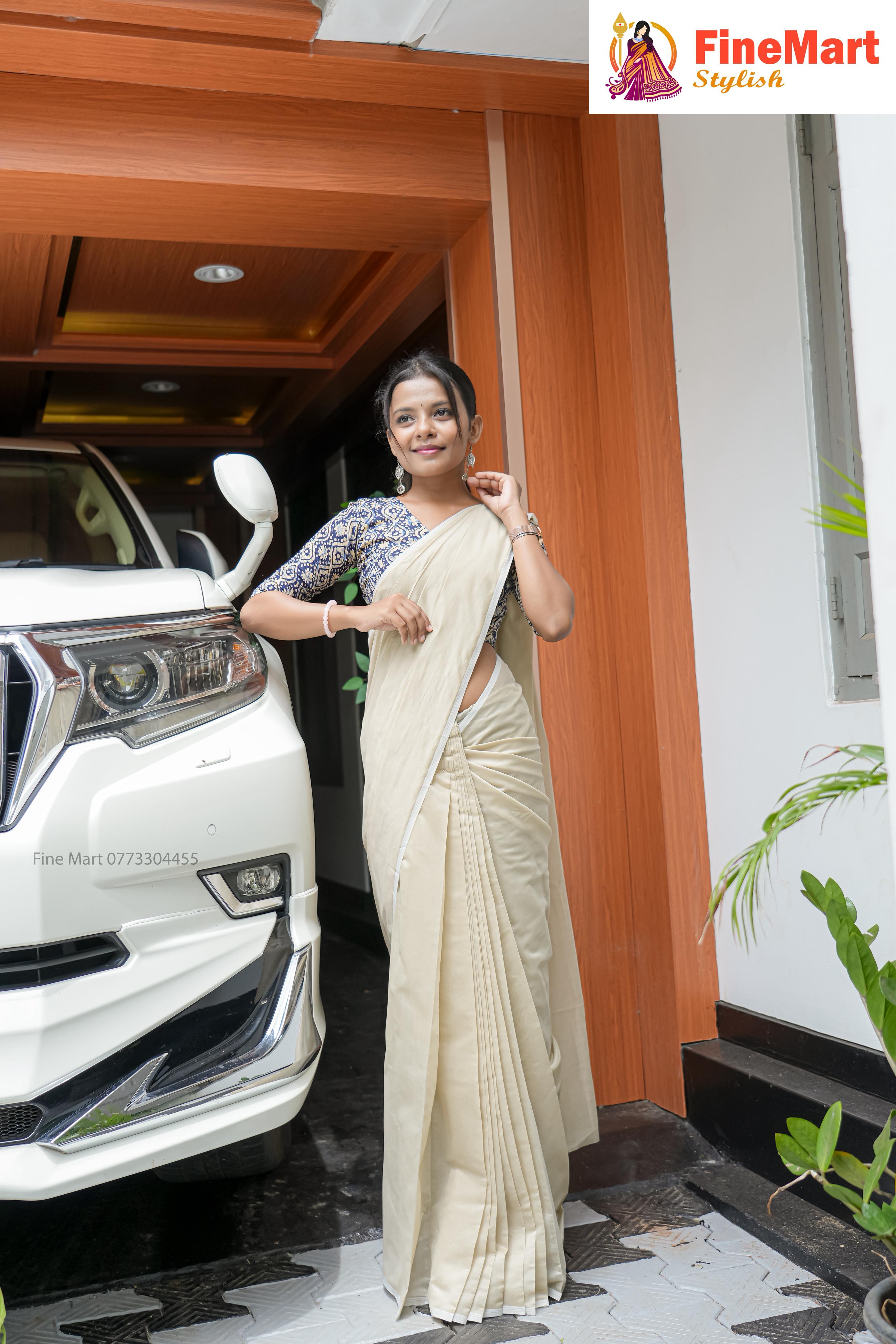 PLAIN DAILY WEAR SOFT COTTON SAREE WITH BLOUSE PIECE