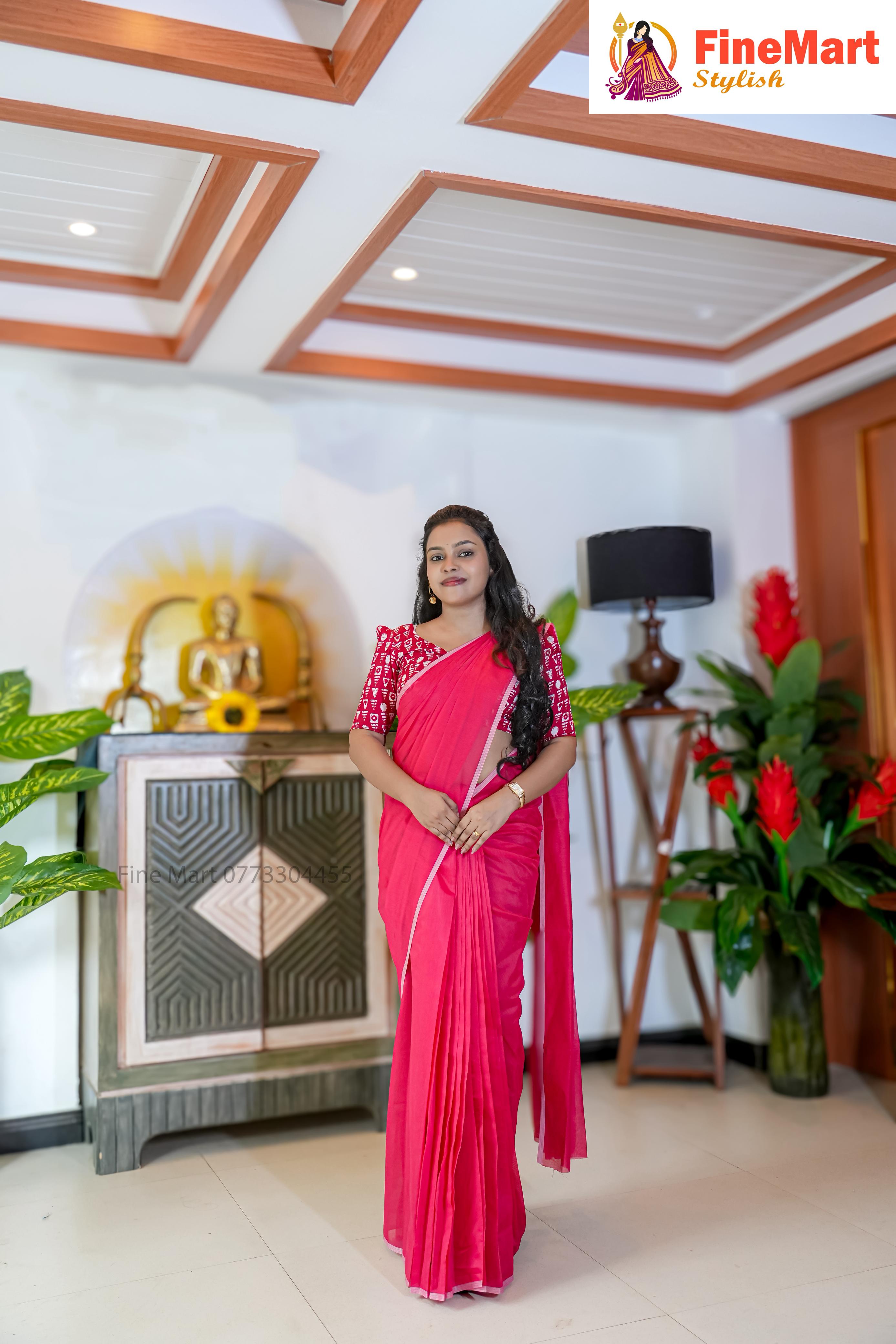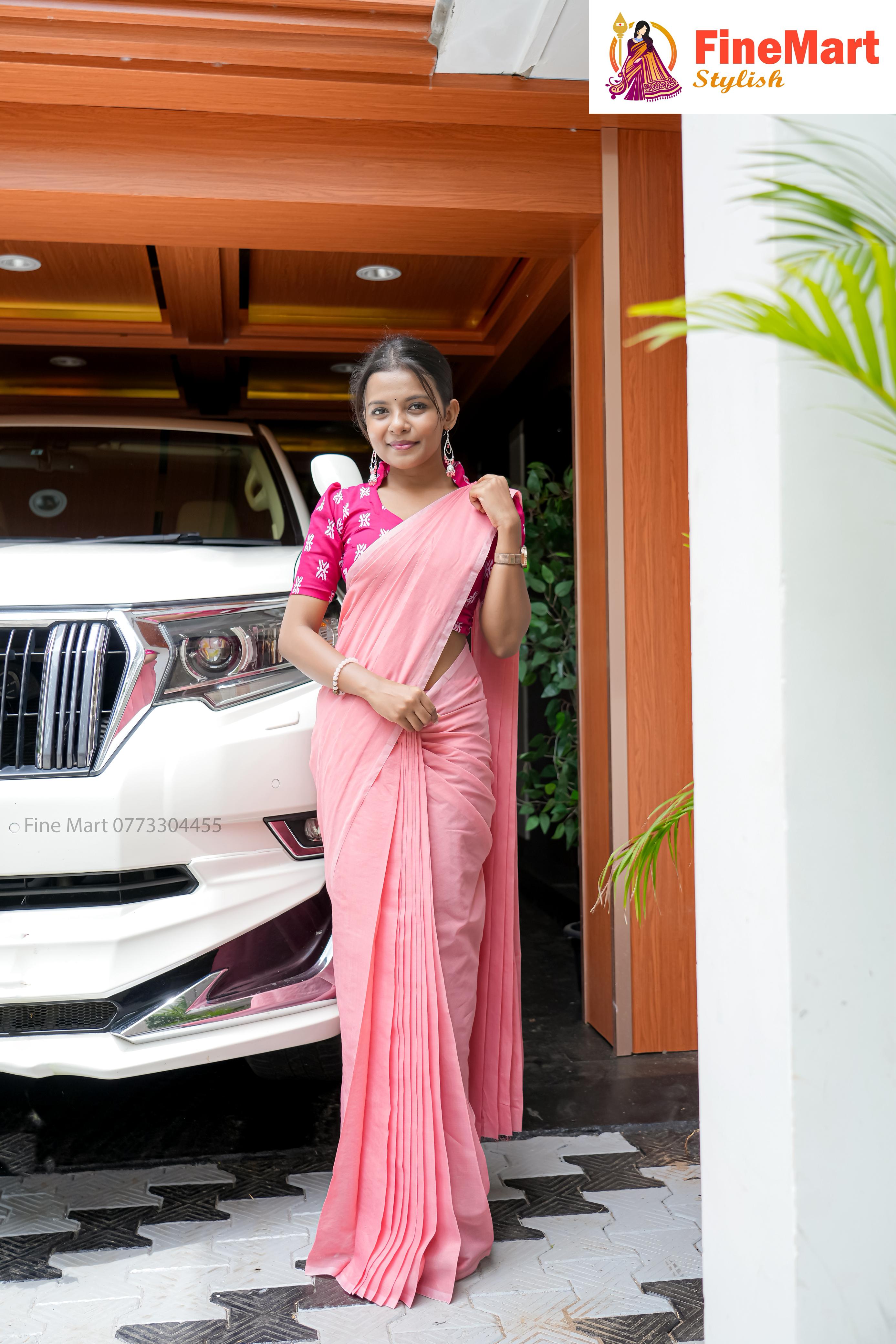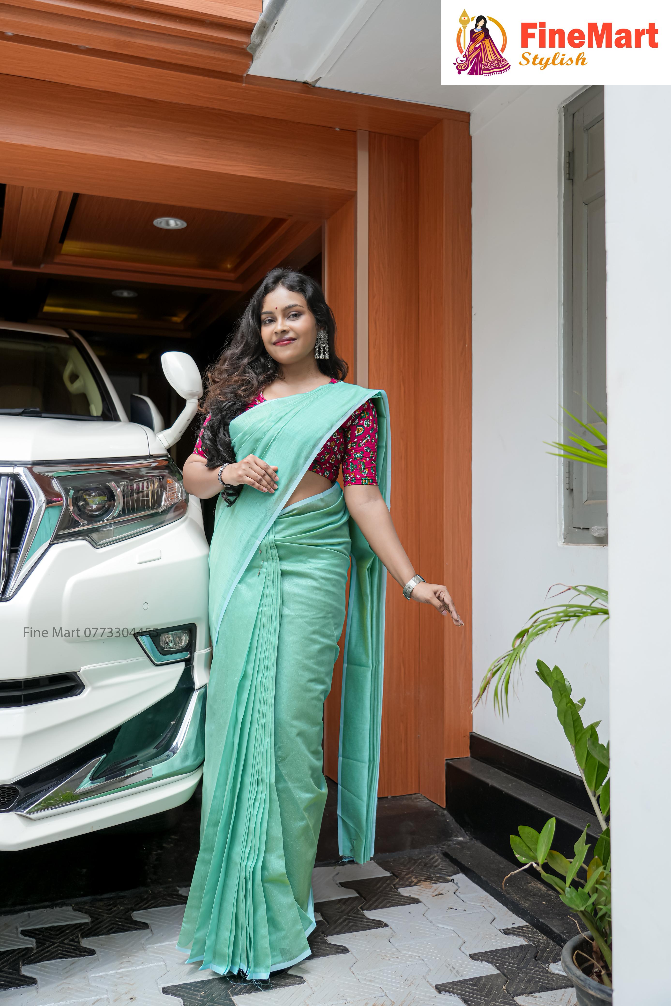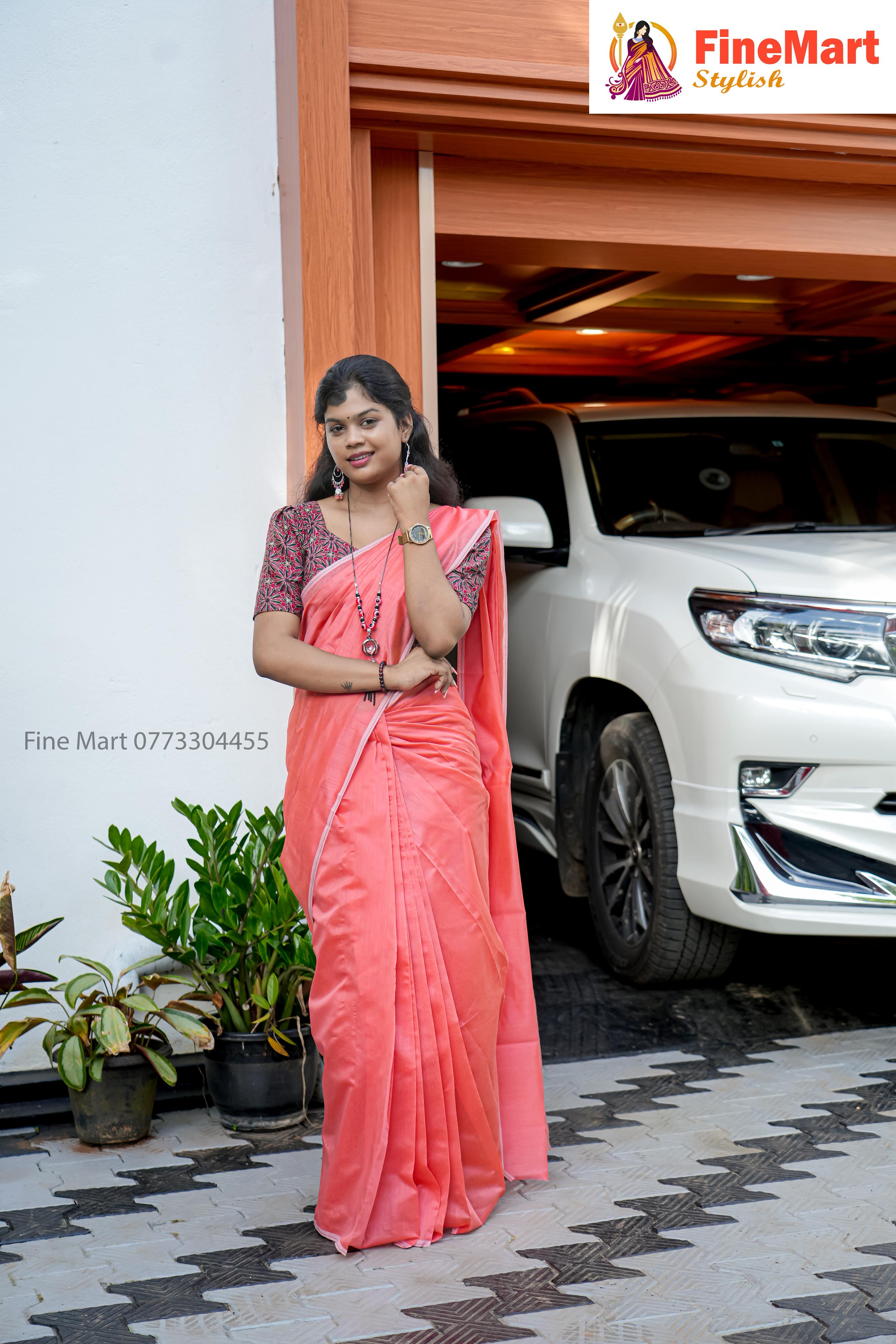 PLAIN DAILY WEAR SOFT COTTON SAREE WITH BLOUSE PIECE