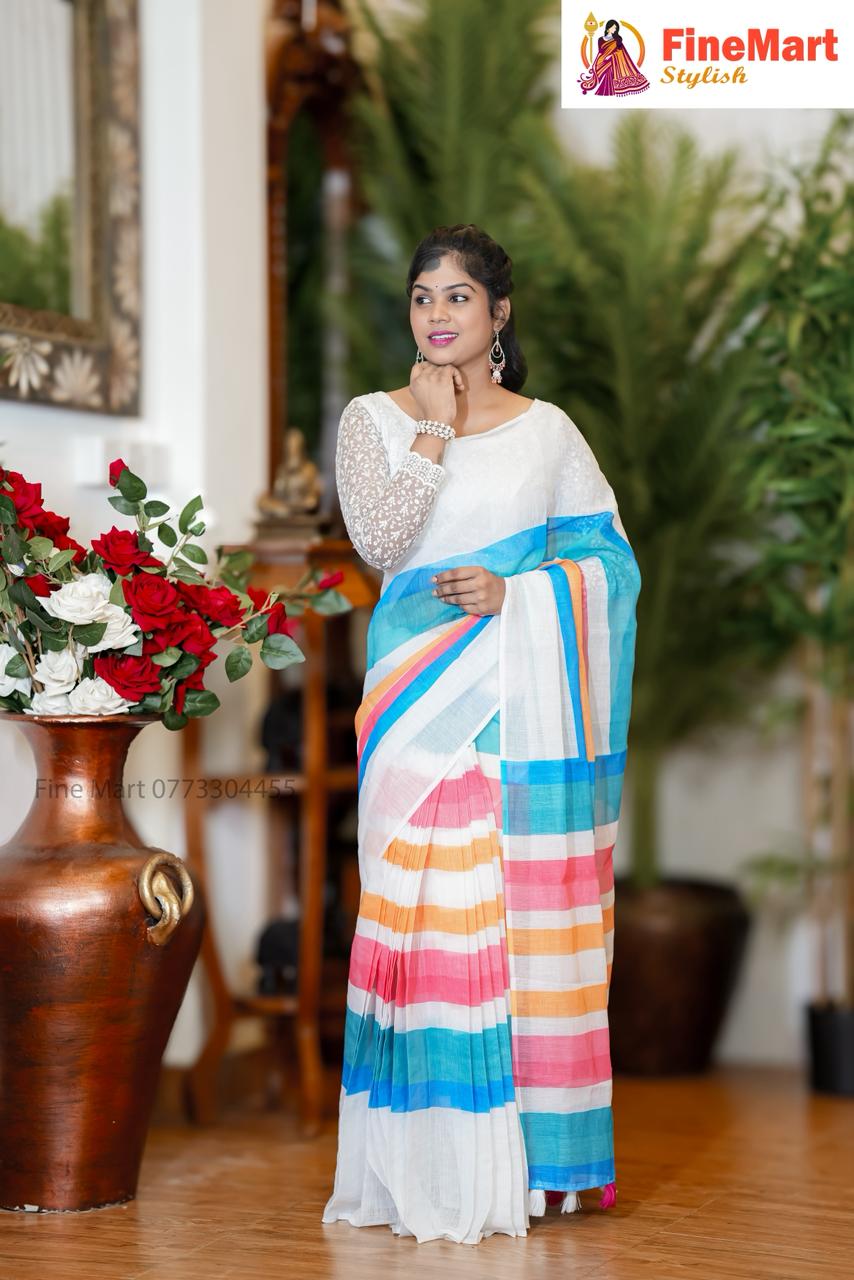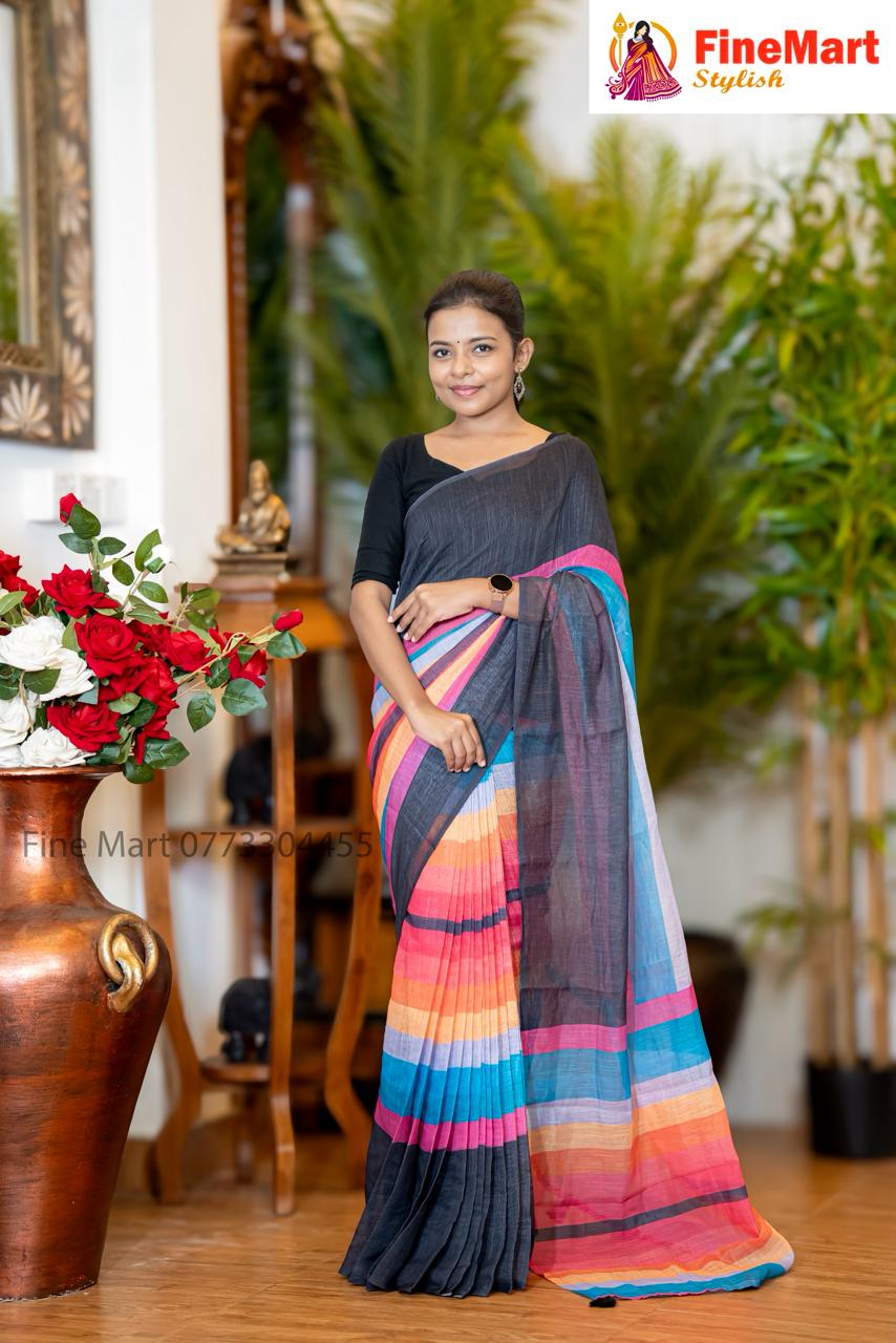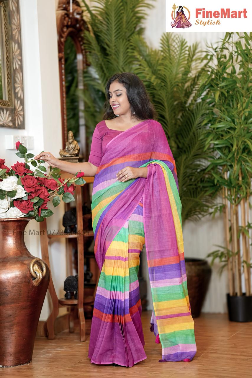 - RAINBOW DESIGN LINEN SAREE