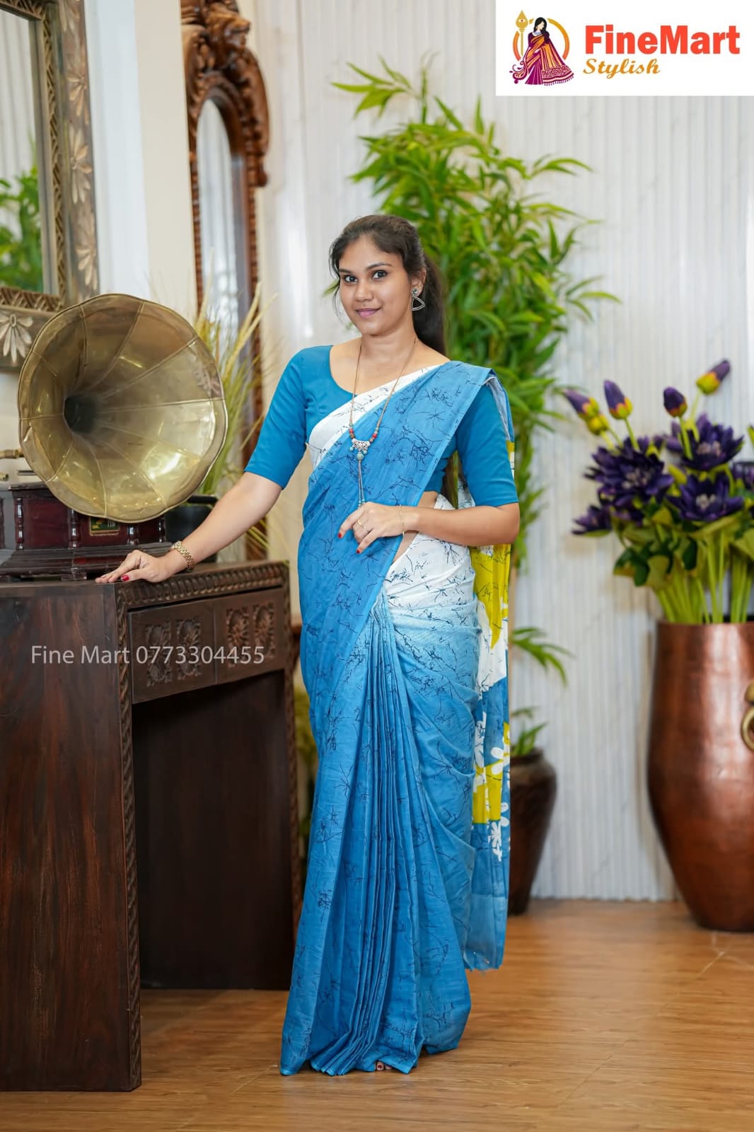 INDIAN BATIK SAREE WITH CONTRAST BLOUSE