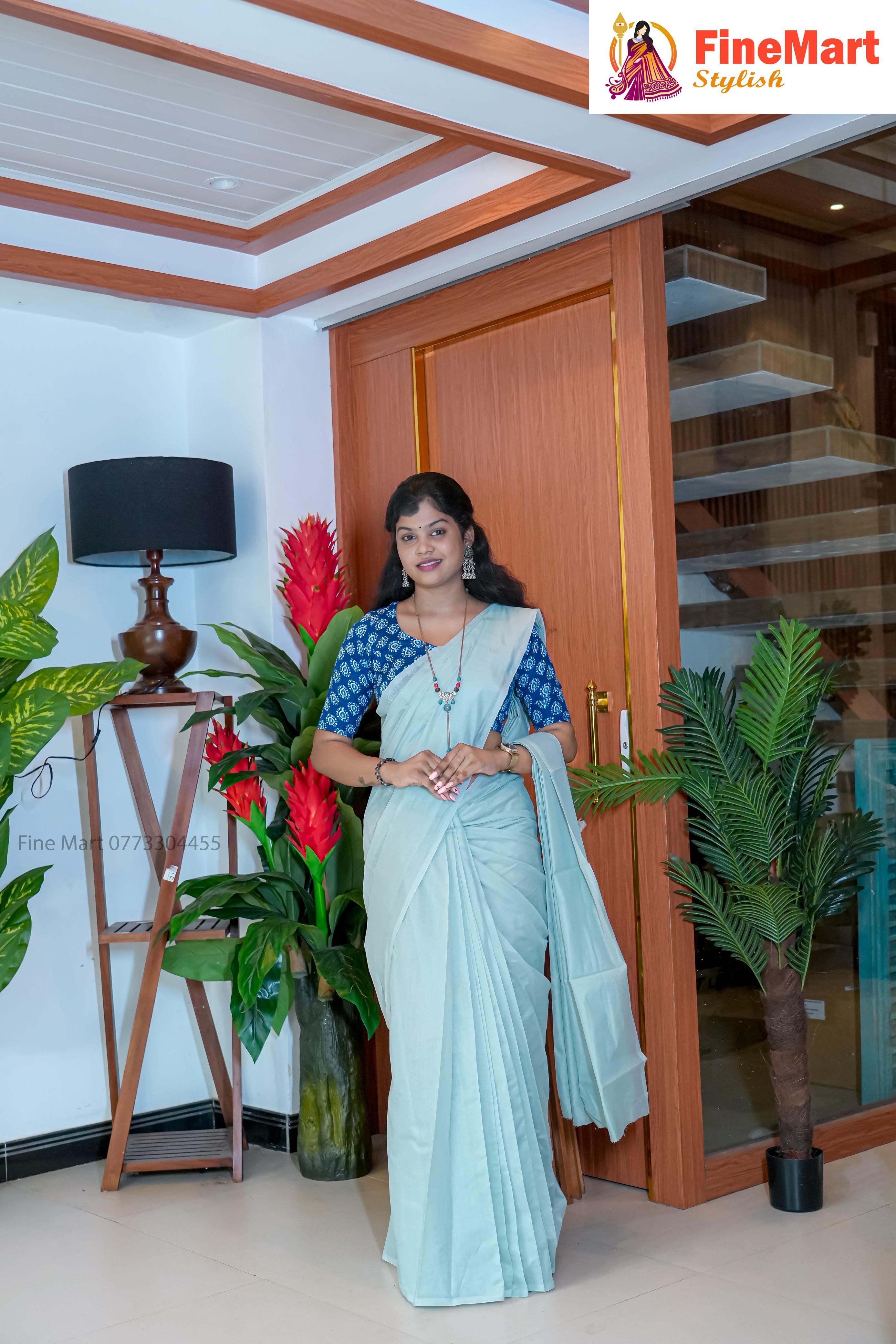 PLAIN DAILY WEAR SOFT COTTON SAREE WITH BLOUSE PIECE