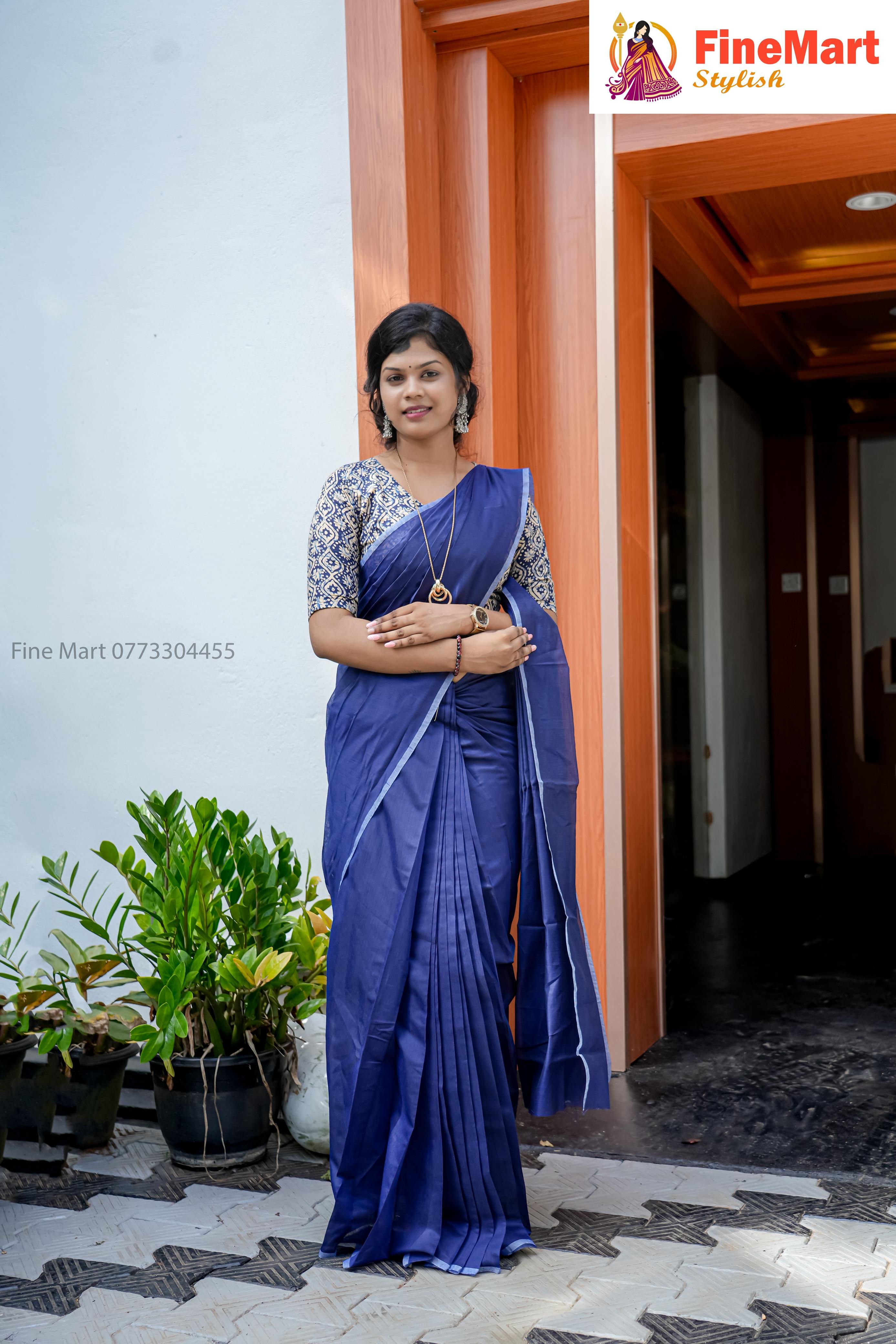 PLAIN DAILY WEAR SOFT COTTON SAREE WITH BLOUSE PIECE