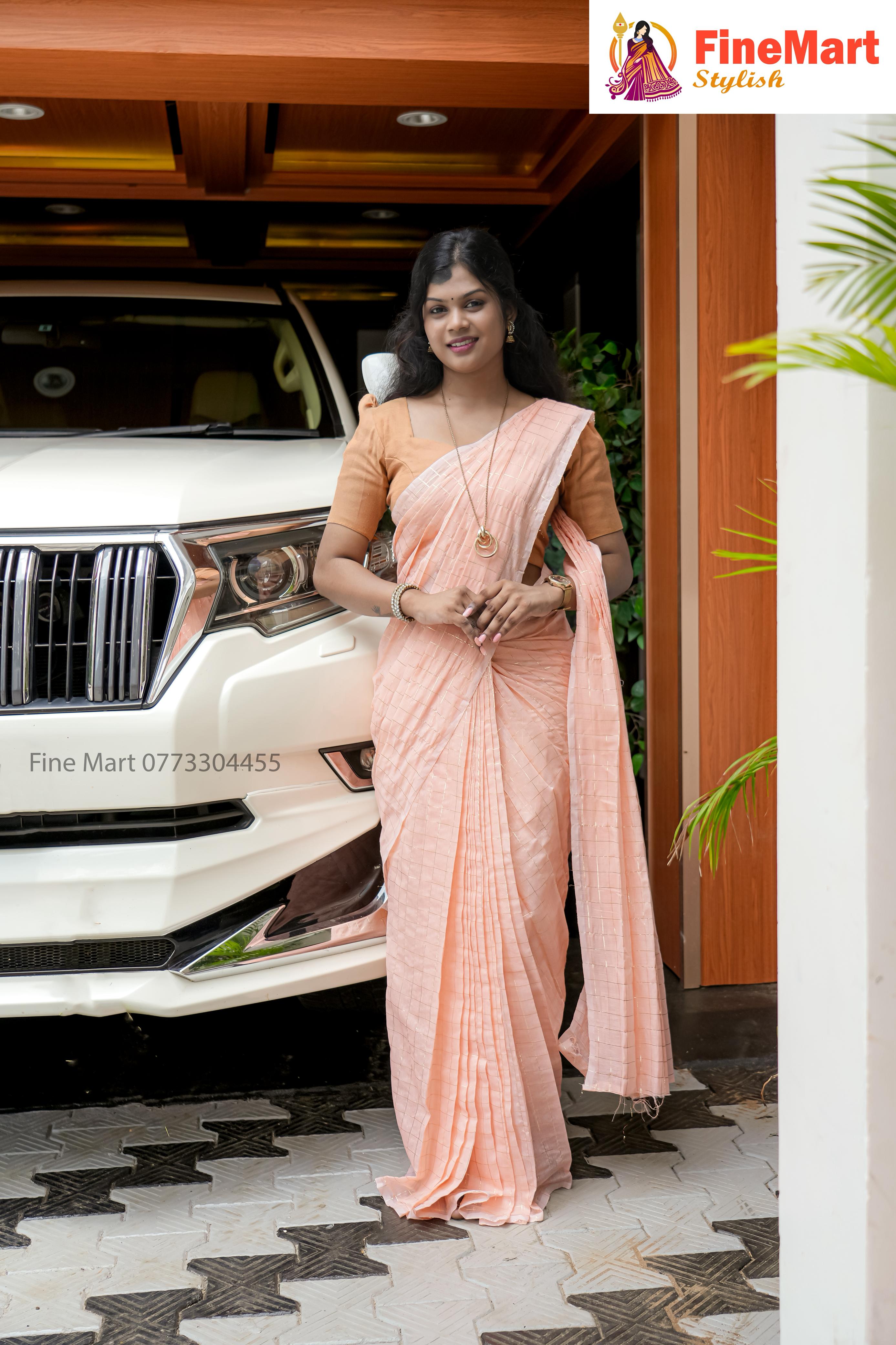 SMALL GOLD CHECK SAREE WITH RUNNING BLOUSE