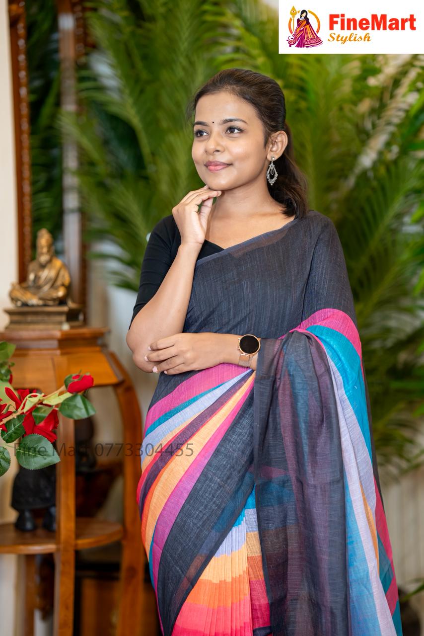 RAINBOW LINEN SAREE WITH CONTRAST BLOUSE